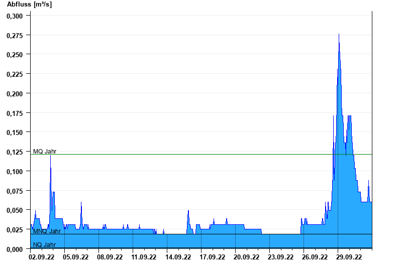 - Mittlerer Niedrigwasserabfluss MNQ 0,019 m³/s