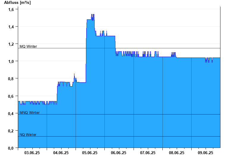 - Mittlerer Niedrigwasserabfluss MNQ 0,387 m³/s