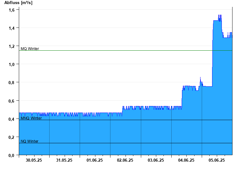 - Mittlerer Niedrigwasserabfluss MNQ 0,387 m³/s
