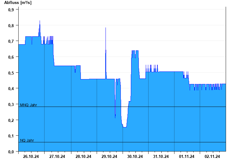 - Mittlerer Niedrigwasserabfluss MNQ 0,283 m³/s