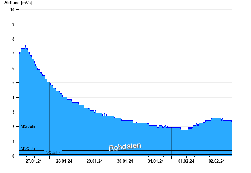 - Mittlerer Niedrigwasserabfluss MNQ 0,357 m³/s