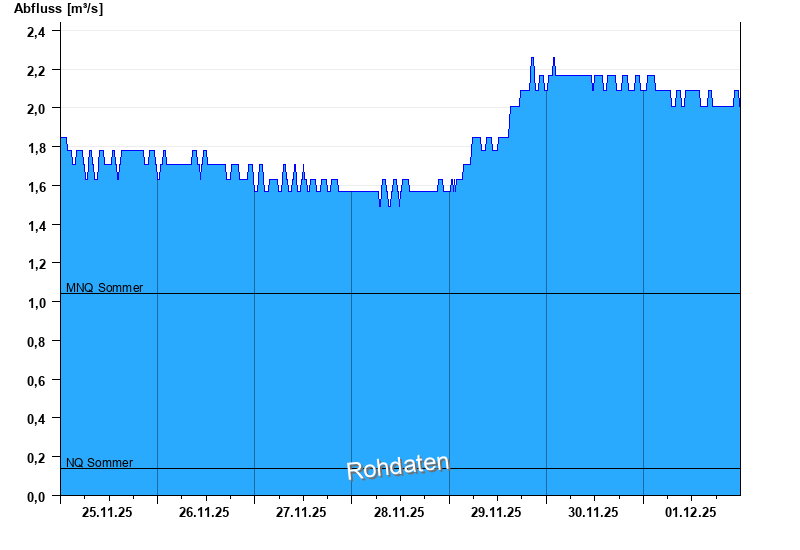 - Mittlerer Niedrigwasserabfluss MNQ 1,04 m³/s