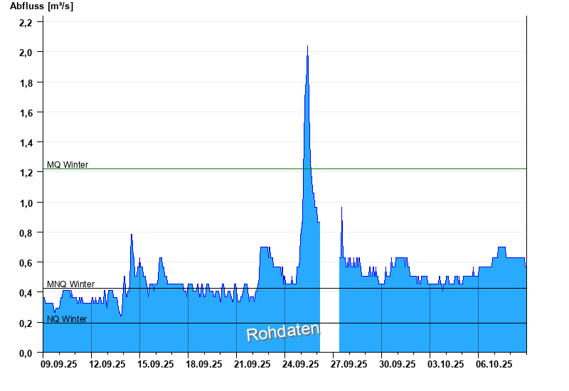 - Mittlerer Niedrigwasserabfluss MNQ 0,425 m³/s