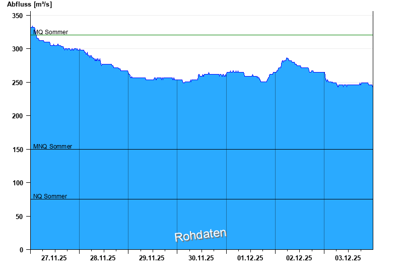 - Mittlerer Niedrigwasserabfluss MNQ 150 m³/s