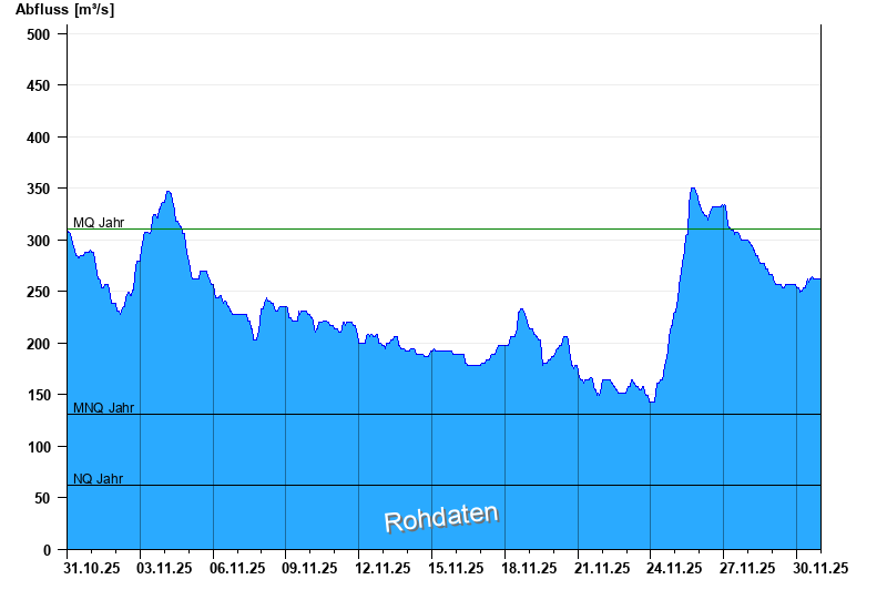- Mittlerer Niedrigwasserabfluss MNQ 131 m³/s