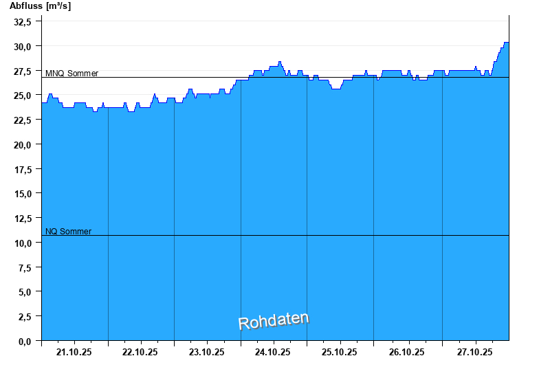 - Mittlerer Niedrigwasserabfluss MNQ 26,8 m³/s