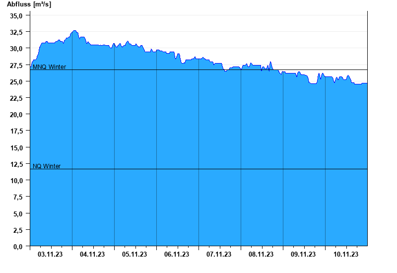- Mittlerer Niedrigwasserabfluss MNQ 26,7 m³/s