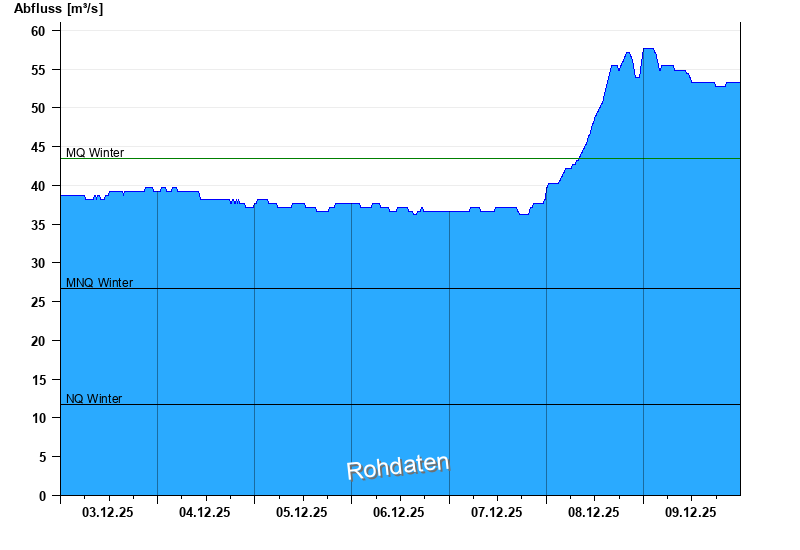 - Mittlerer Niedrigwasserabfluss MNQ 26,7 m³/s