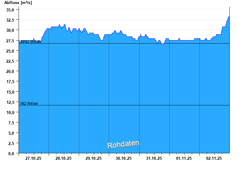 - Mittlerer Niedrigwasserabfluss MNQ 26,7 m³/s