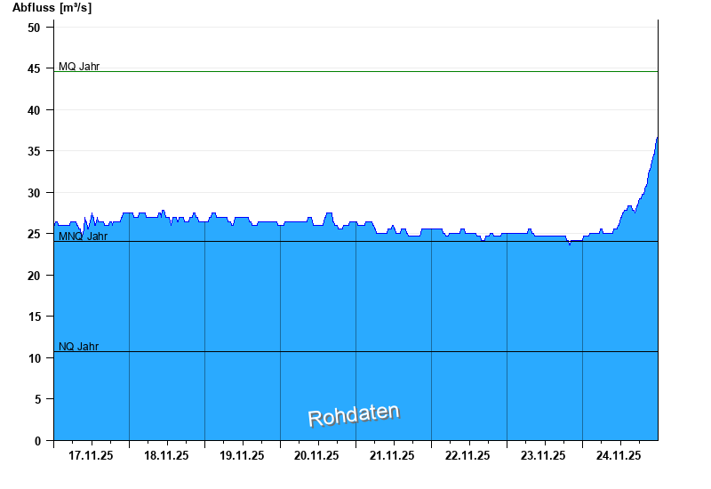 - Mittlerer Niedrigwasserabfluss MNQ 24,1 m³/s