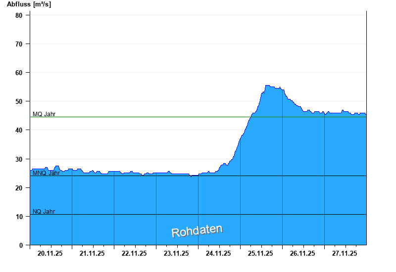 - Mittlerer Niedrigwasserabfluss MNQ 24,1 m³/s
