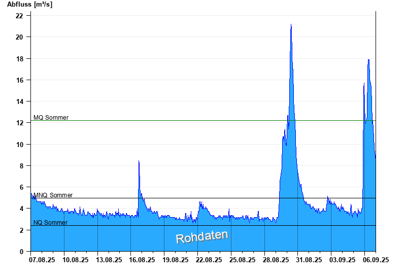 - Mittlerer Niedrigwasserabfluss MNQ 4,95 m³/s