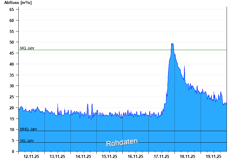 - Mittlerer Niedrigwasserabfluss MNQ 9,43 m³/s