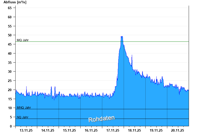 - Mittlerer Niedrigwasserabfluss MNQ 9,43 m³/s