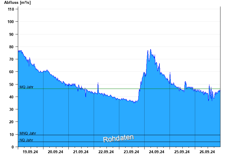 - Mittlerer Niedrigwasserabfluss MNQ 9,43 m³/s