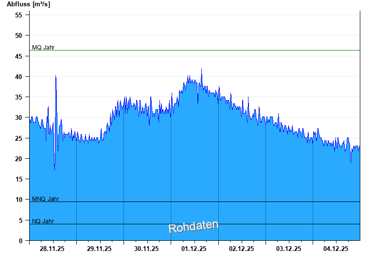 - Mittlerer Niedrigwasserabfluss MNQ 9,43 m³/s