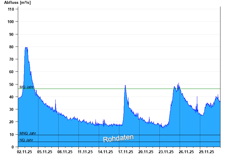 - Mittlerer Niedrigwasserabfluss MNQ 9,43 m³/s