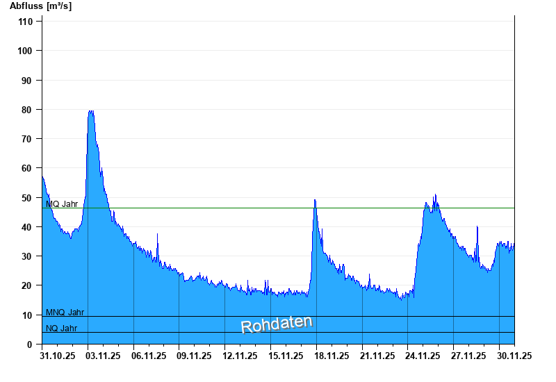 - Mittlerer Niedrigwasserabfluss MNQ 9,43 m³/s