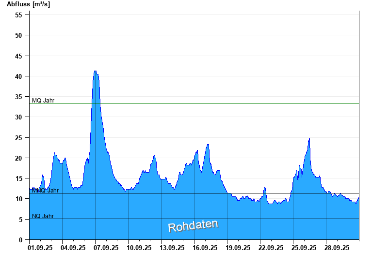 - Mittlerer Niedrigwasserabfluss MNQ 11,4 m³/s