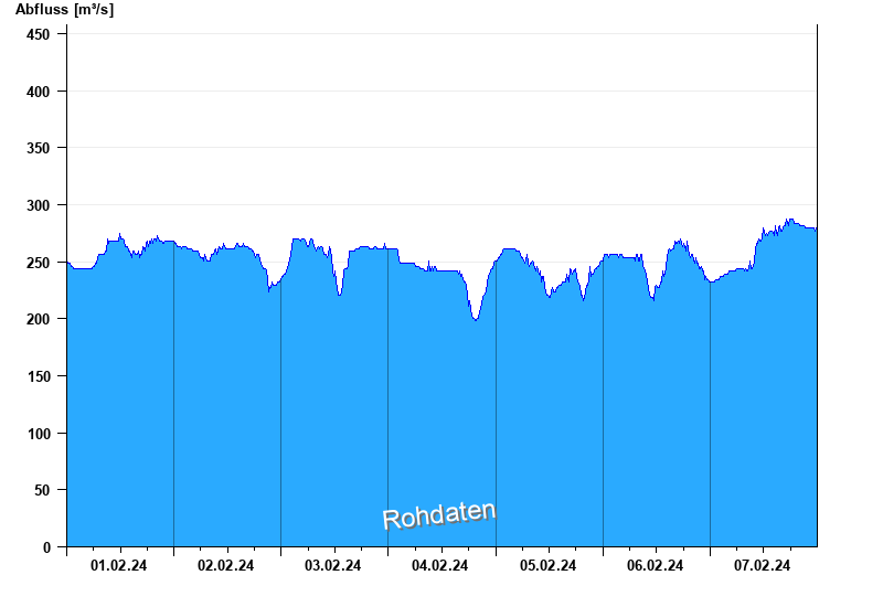 Ausgabe von Abflusswerten wegen Stauregelung erst ab W = 130 cm