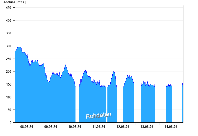 Ausgabe von Abflusswerten wegen Stauregelung erst ab W = 130 cm