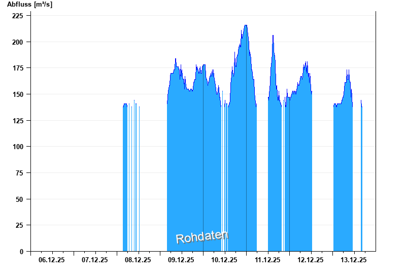 Ausgabe von Abflusswerten wegen Stauregelung erst ab W = 130 cm