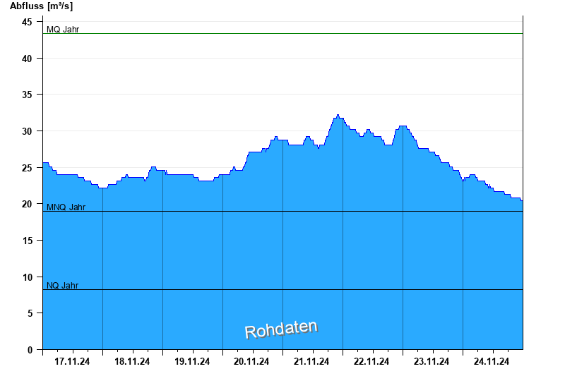 - Mittlerer Niedrigwasserabfluss MNQ 19 m³/s