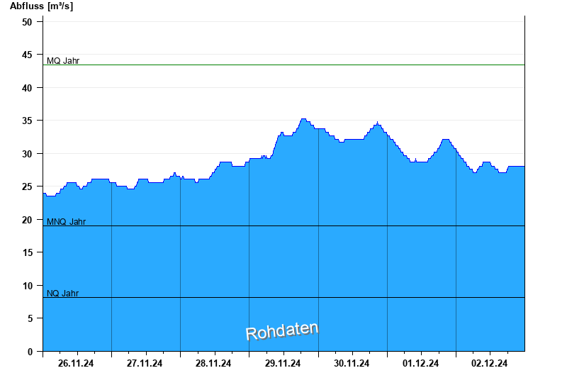 - Mittlerer Niedrigwasserabfluss MNQ 19 m³/s