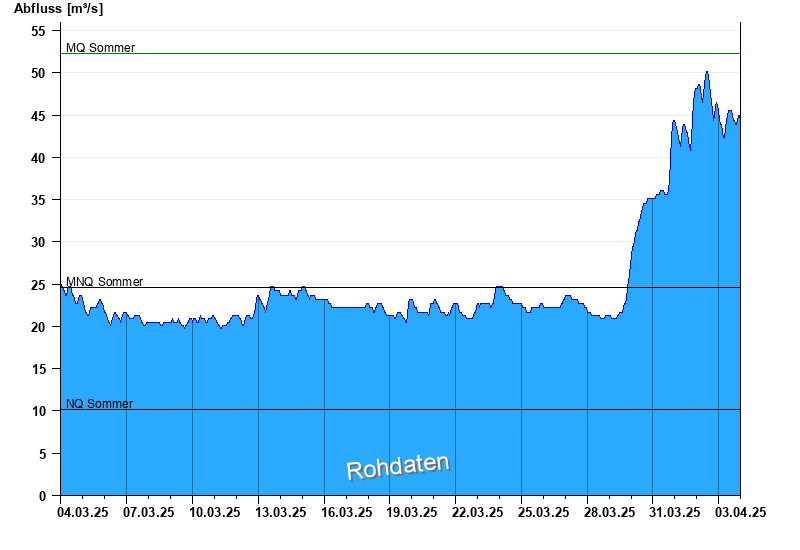- Mittlerer Niedrigwasserabfluss MNQ 24,6 m³/s