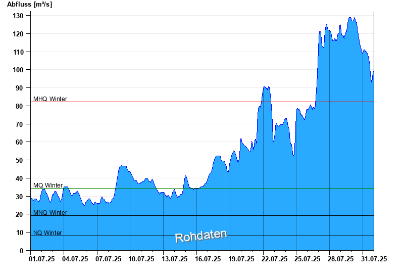 - Mittlerer Niedrigwasserabfluss MNQ 19,2 m³/s