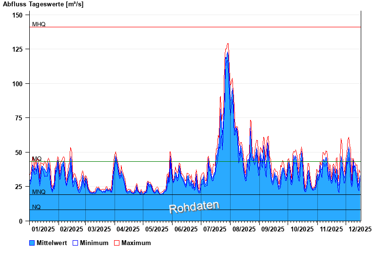 - Mittlerer Niedrigwasserabfluss MNQ 19 m³/s