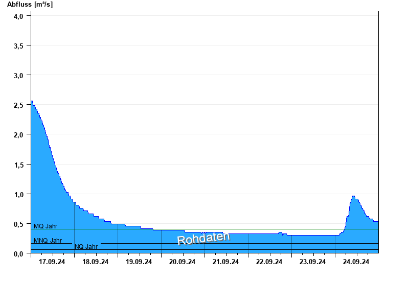 - Mittlerer Niedrigwasserabfluss MNQ 0,161 m³/s