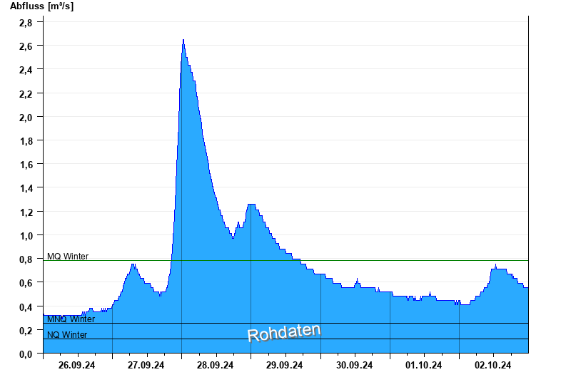 - Mittlerer Niedrigwasserabfluss MNQ 0,255 m³/s