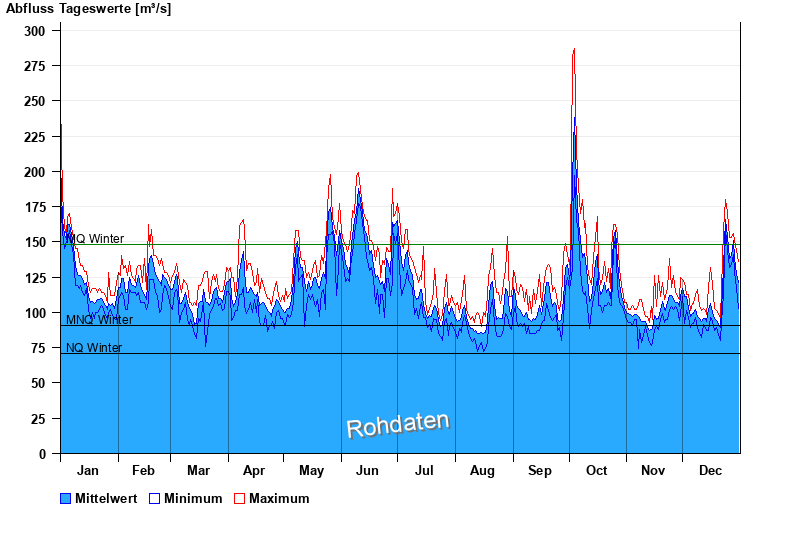 - Mittlerer Hochwasserabfluss MHQ 377 m³/s