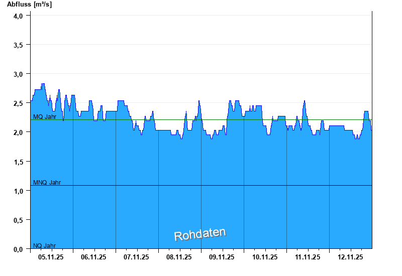 - Mittlerer Niedrigwasserabfluss MNQ 1,08 m³/s