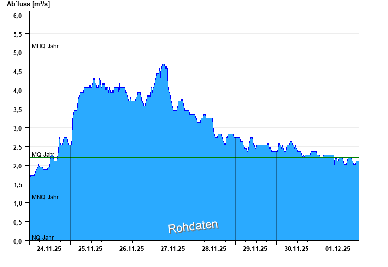 - Mittlerer Niedrigwasserabfluss MNQ 1,08 m³/s