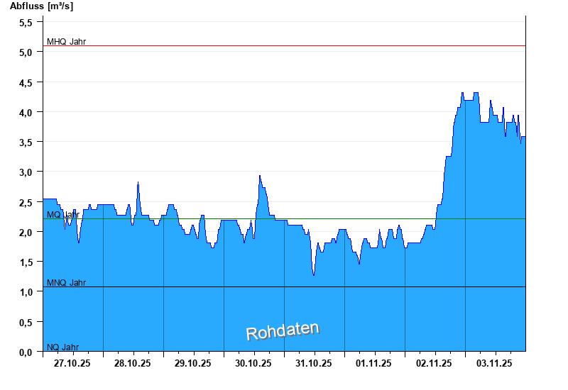 - Mittlerer Niedrigwasserabfluss MNQ 1,08 m³/s