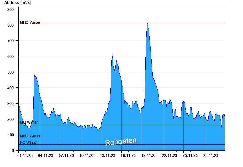 - Mittlerer Hochwasserabfluss MHQ 806 m³/s