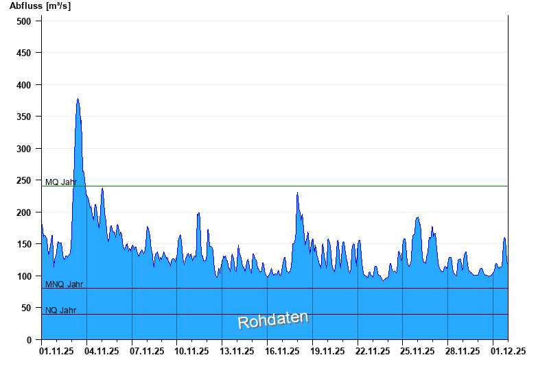 - Mittlerer Niedrigwasserabfluss MNQ 81,1 m³/s