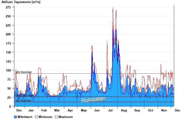- Mittlerer Niedrigwasserabfluss MNQ 26,9 m³/s
