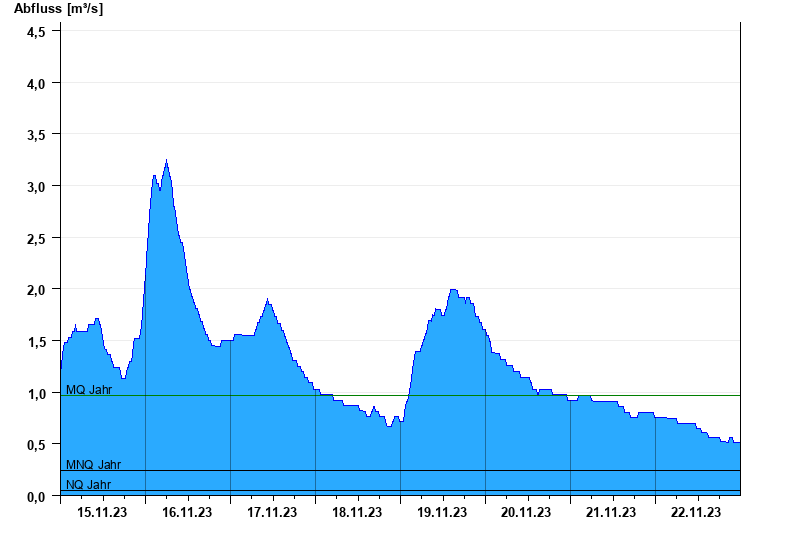 - Mittlerer Niedrigwasserabfluss MNQ 0,239 m³/s