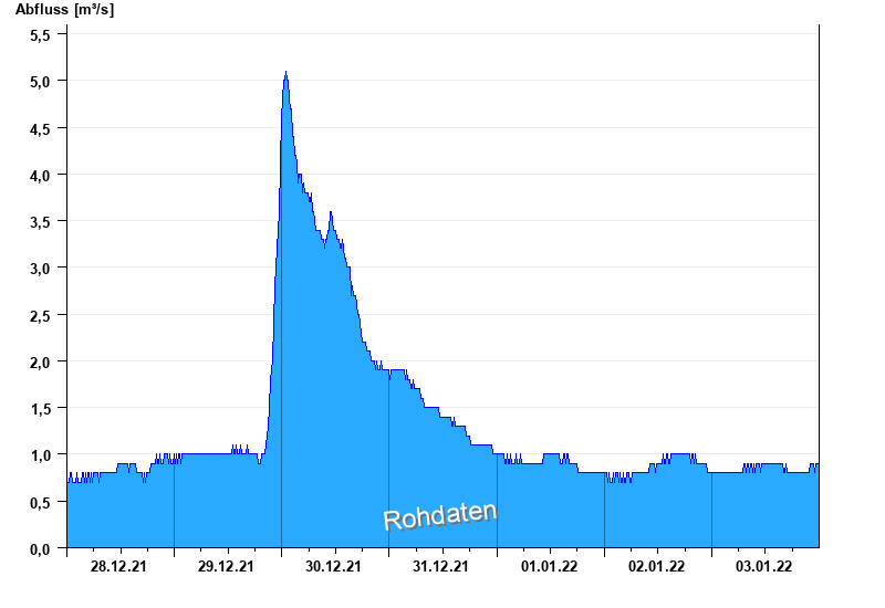 Abfluss und Wasserstand im Pegelbereich durch Baumaßnahme beeinflusst.