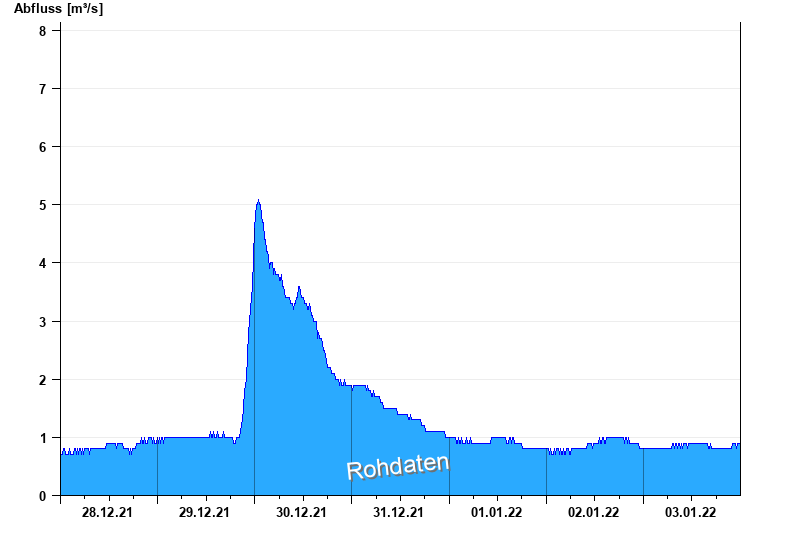 Abfluss und Wasserstand im Pegelbereich durch Baumaßnahme beeinflusst.