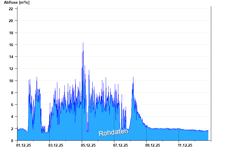 Abfluss und Wasserstand im Pegelbereich durch Baumaßnahme beeinflusst.