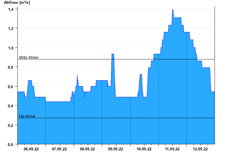 - Mittlerer Niedrigwasserabfluss MNQ 0,879 m³/s