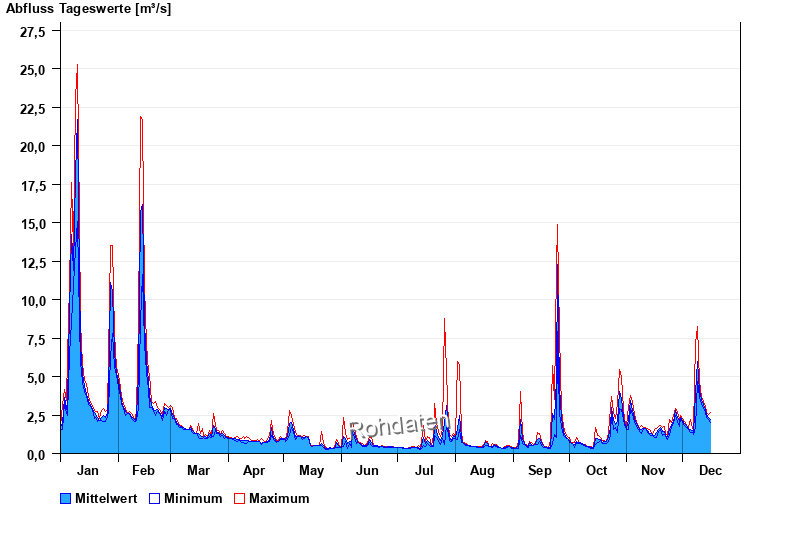 | Date | Mean value [m³/s] | Maximum [m³/s] | Minimum [m³/s] |