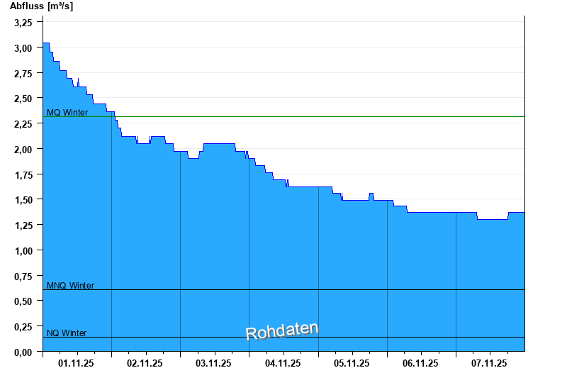- Mittlerer Niedrigwasserabfluss MNQ 0,611 m³/s