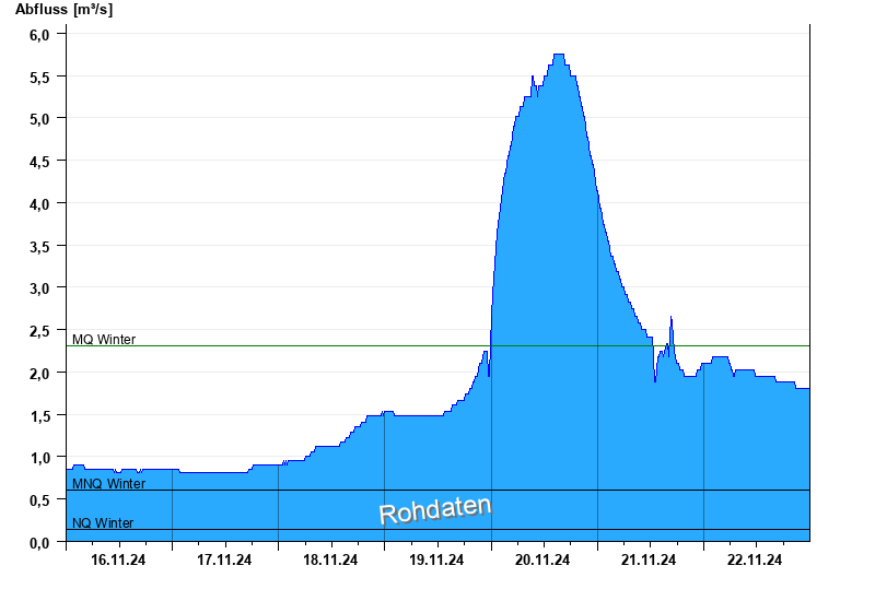 - Mittlerer Niedrigwasserabfluss MNQ 0,611 m³/s