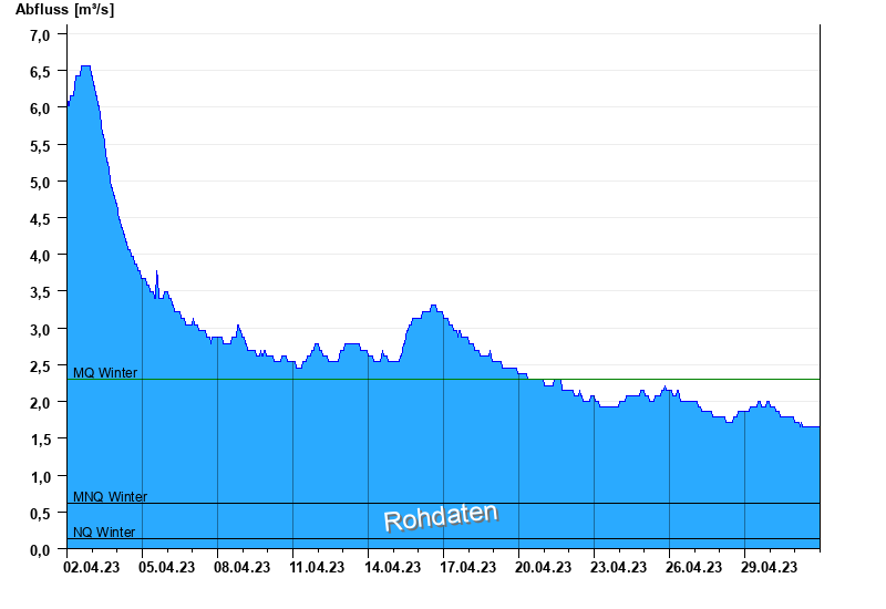 - Mittlerer Niedrigwasserabfluss MNQ 0,611 m³/s