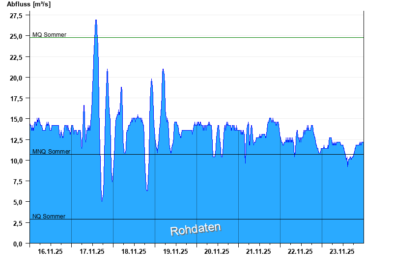 - Mittlerer Niedrigwasserabfluss MNQ 10,7 m³/s